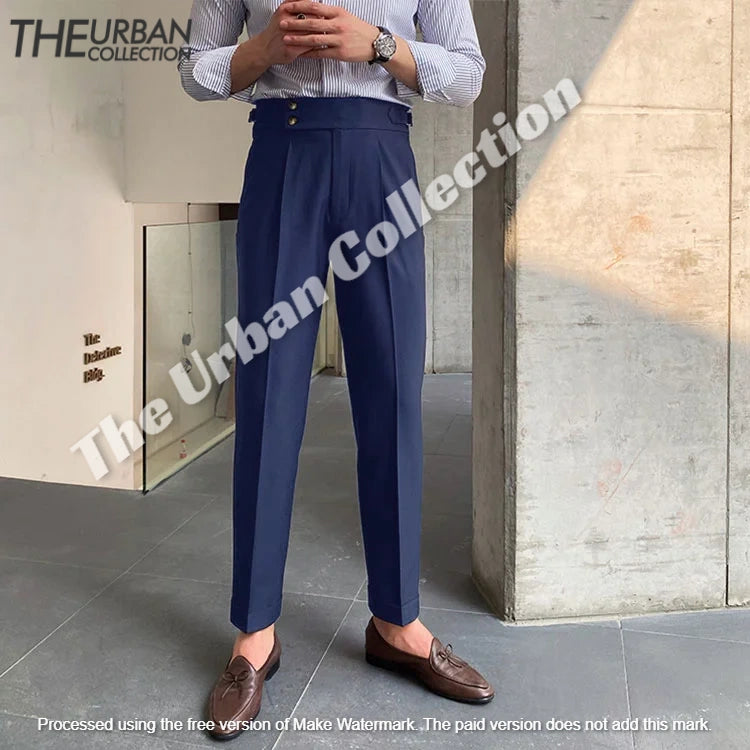 British Classic Men's High Waist Dress Pants - Flat Front, Side Pockets, Back Welt Pockets
